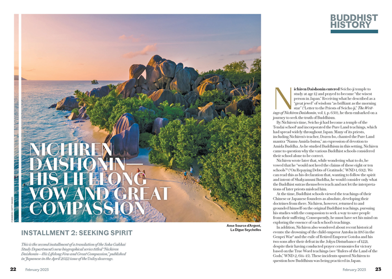 This new biographical series by the Soka Gakkai Study Department covers Nichiren Daishonin’s lifelong struggle for peace. It runs monthly in the Living Buddhism, starting with the January 2023 issue.