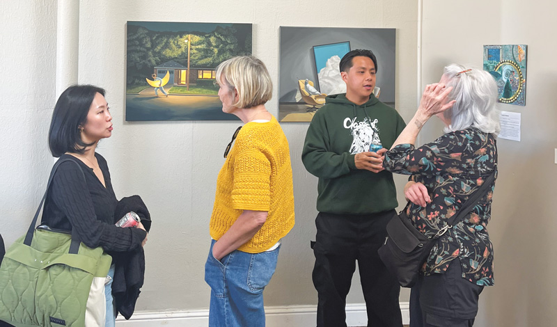 The program began with a half-hour open art show, where attendees walked through the space viewing artwork created by members. The pieces reflected the diversity of the local art community, from paintings and sculptures made with metal and even motorcycle tires.