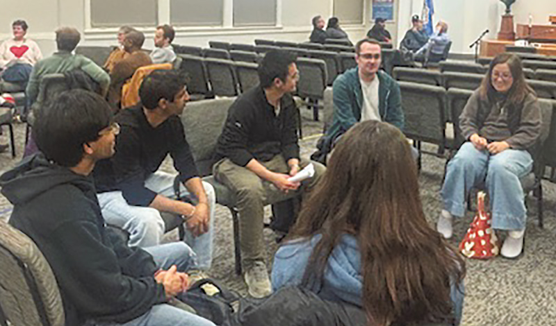 The participants chanted Nam-myoho-renge-kyo together, then took part in icebreakers where participants reflected on relationships. The goal was to create a comfortable space where people could be vulnerable and talk openly about a topic that often carries pressure.
