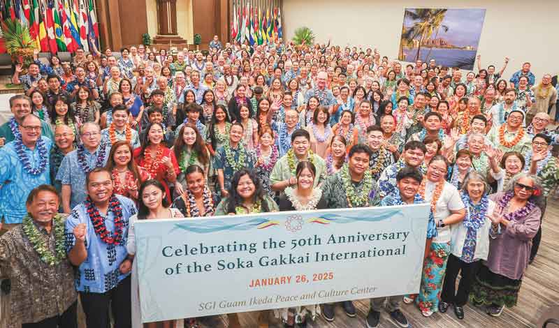 Our zone was established on July 15, 2007, and holds a deep and enduring history connected to Ikeda Sensei. He visited Hawaii a total of 19 times, beginning with his very first overseas trip on Oct. 2, 1960. In addition, Sensei founded the Soka Gakkai International on the island of Guam on Jan. 26, 1975. These milestones form the eternal history and pride of the Pacific Zone and its profound bond with Sensei.